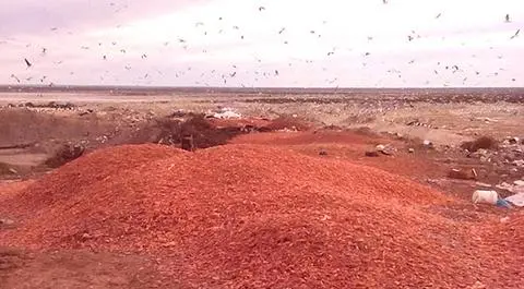 El procesamiento del langostino implica desechar el 67% de cada ejemplar, un residuo que termina en basurales a cielo abierto –que generan denuncias por malos olores y posibles focos infecciosos– en terrenos municipales que les habilitaron las dos ciudades donde procesan los langostinos que pescan: Puerto Deseado (Santa Cruz) y Rawson (Chubut). (Por Vanina Lombardi)