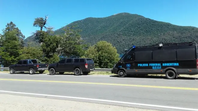 La ruta nacional 40 se cortó al tránsito a partir de las 9 con un cordón de gendarmes pero luego se habilitó el tránsito hasta cerca de las 11:30 cuando llegó a Villa Mascardi una caravana de vehículos de la Policía Federal que fue convocada por el juez para llevar adelante el operativo.