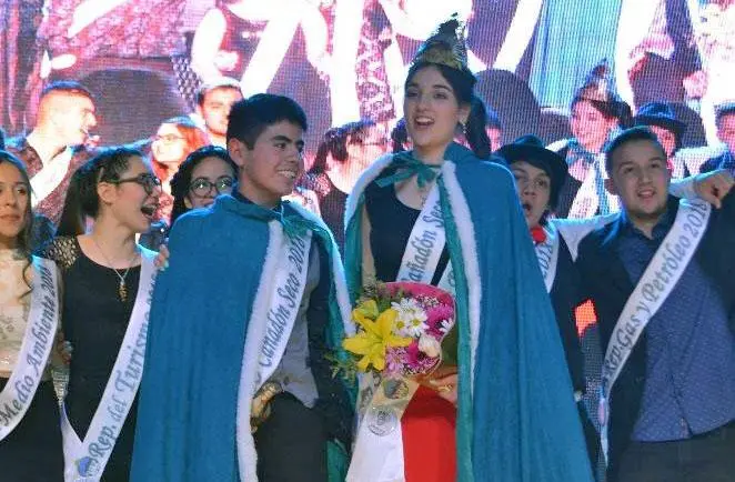 Luisina Romero Olea quién fue elegida como Representante de los Pioneros, Ian Pozo Miranda como Representante de los Derechos Humanos fueron coronados por el Presidente de la Comisión Jorge Soloaga con profunda emoción como Soberanos de Cañadón Seco durante 2018-2019.