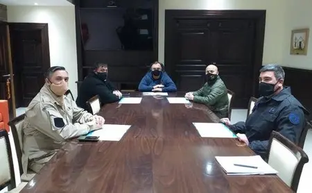 Los jefes de las fuerzas locales, Sergio Vera -Policía de la Provincia de Santa Cruz-, Héctor Ferreyra -Gendarmería Nacional-, Guido Aguirre -Prefectura Nacional-, y Sebastián Faraldo -Policía Federal Argentina- articularon con el intendente una serie de operativos y estrategias que se desplegarán a partir de mañana en El Calafate.
