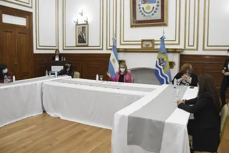 Alicia Kirchner estuvo acompañada por la presidenta del Tribunal Superior de Justicia, Paula Ludueña; la ministra Secretaria General de la Gobernación, Claudia Martínez; la prosecretaria de la Cámara de Diputadas de la provincia, Alejandra Retamozo; y la secretaria de Estado de Derechos Humanos, Nadia Astrada. De manera virtual, acompañó el vicegobernador Eugenio Quiroga.
