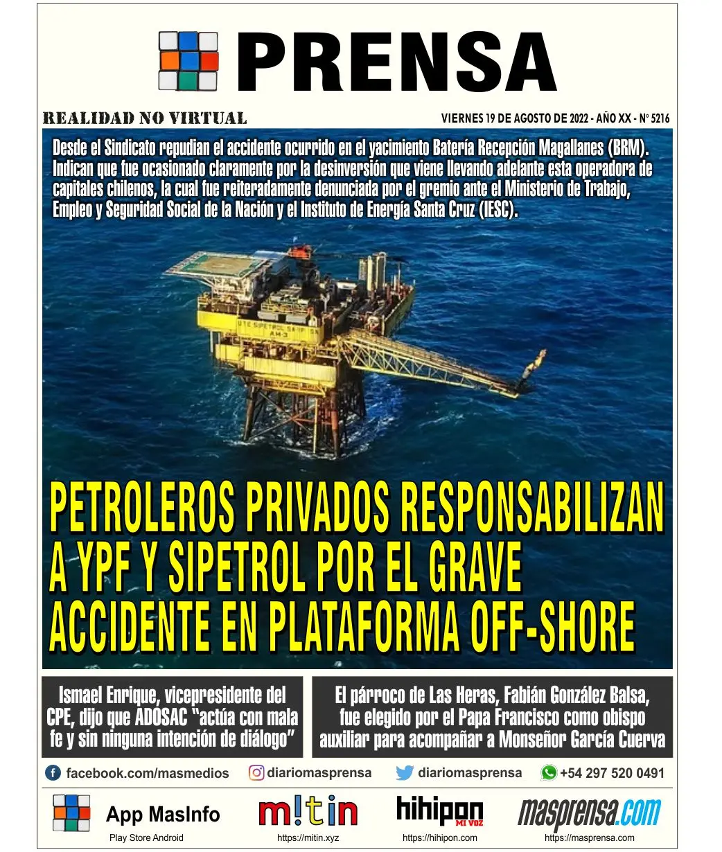 por Redaccion 18 de agosto de 2022 Responsabilizan a YPF y Sipetrol por grave accidente en plataforma off-shore y denuncian desinversión