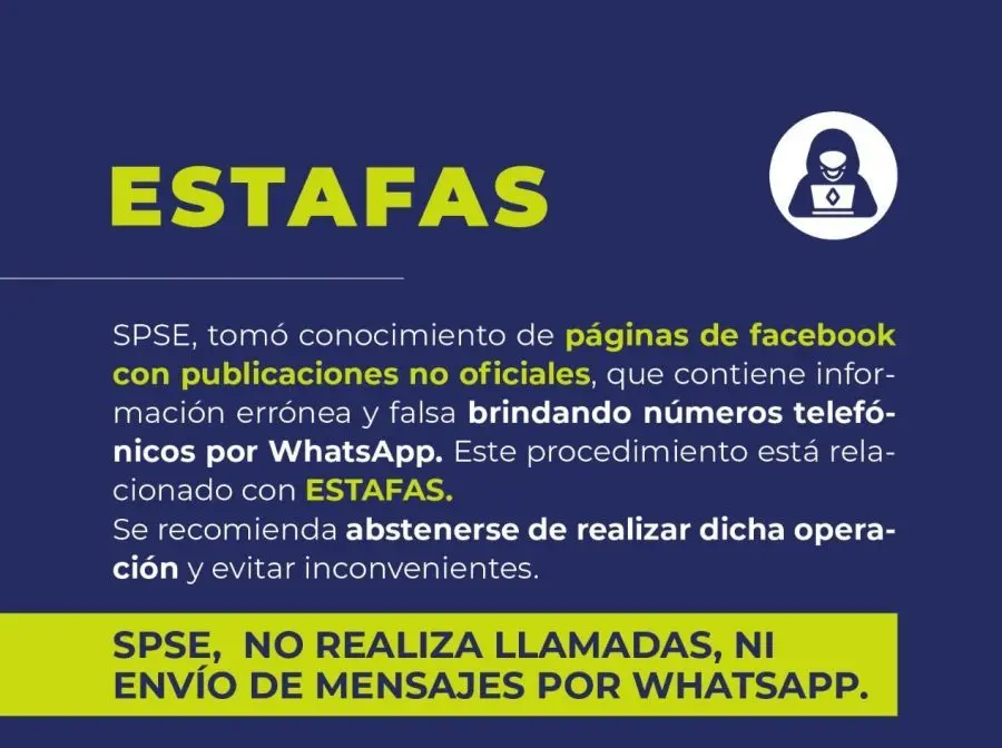 Asimismo, se recuerda que SPSE no realiza llamadas, ni envío de mensajes por WhatsApp.