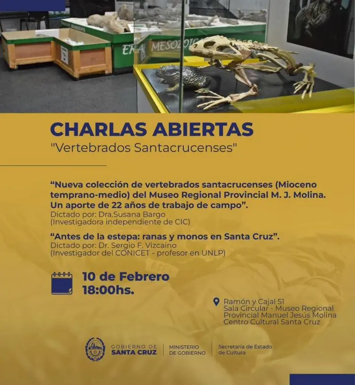 El Ministerio de Gobierno, a través de la Secretaría de Estado de Cultura, invita a la comunidad a participar de la charla abierta titulada «Vertebrados Santacrucenses», que se llevará a cabo mañana 10 de febrero a las 18:00 horas. El evento se realizará en la […]
