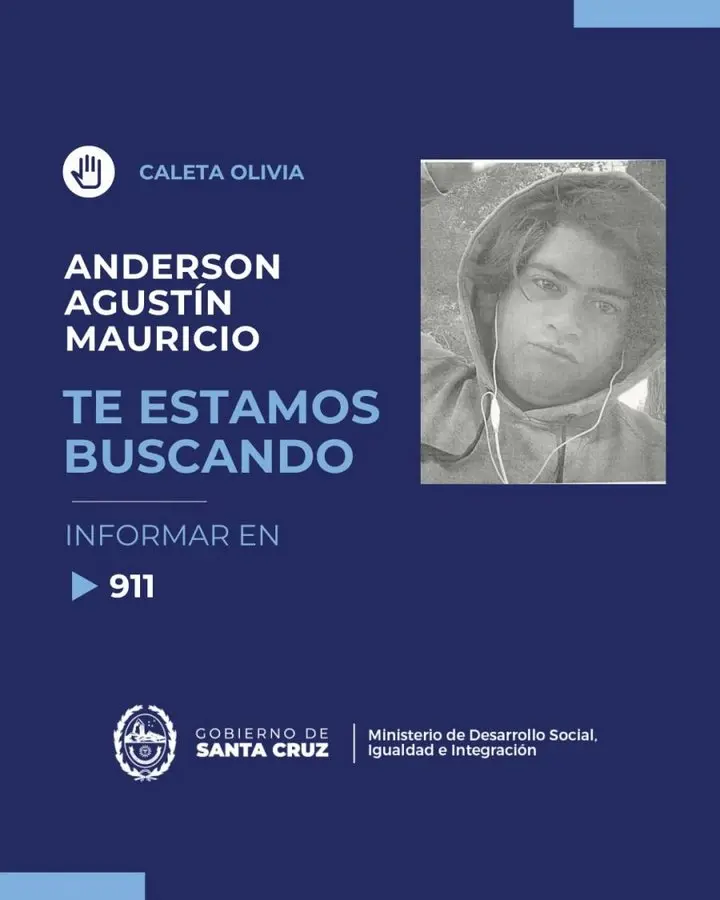 Caleta Olivia: Se solicita colaboración para dar con el paradero de Agustín Mauricio Anderson