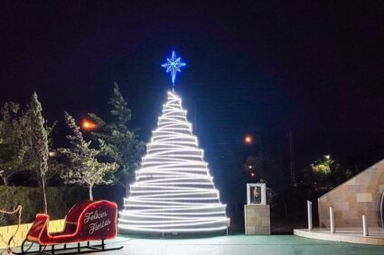 Ya brilla con esplendor religioso el árbol navideño de Cañadón Seco